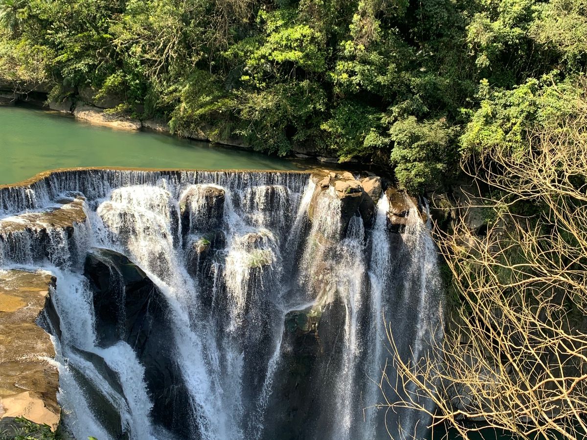 そして訪れた十分の滝は素晴らしい景色であり、水の飛び散る滝とその水の音に包まれて、自然に囲まれている感覚が得られます。滝の周りには緑豊かな山々が広がり、ガイドさんに勧められて飲んだジュースはとても美味しく、本当に美しい場所です。