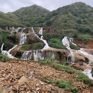 十份は、台湾の内陸部(山岳地域)を彷彿とさせるエリアで、渓谷や滝といった景色を楽しむことができました。また天燈上げは、商店街を突っ切る線路で行うため、電車の来ないタイミングを計って上げるなどスリルも味わえます。