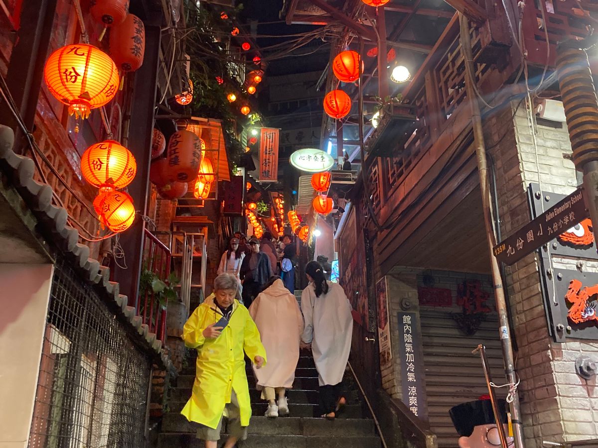 九份十份観光時は傘よりカッパが必要です 九份の階段は急で滑りやすいので靴にも注意が必要です