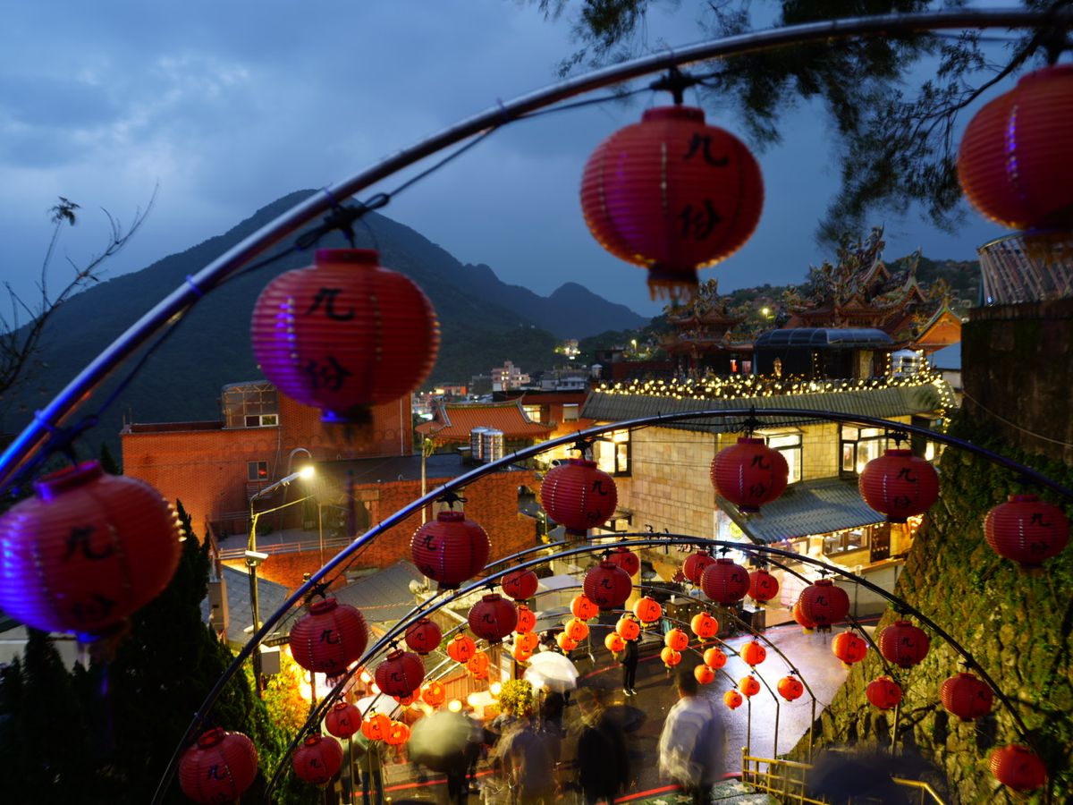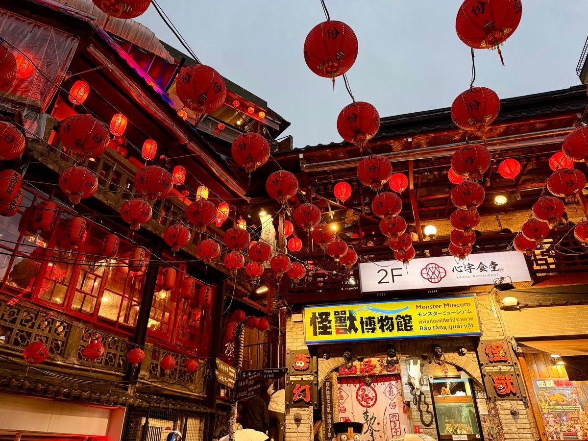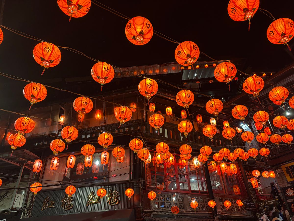 邀月茶坊でのリラックスした時間、ロープウェイからの夕焼け、そして九份のランタンの景色など、