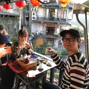 混雑していた九フンのお茶屋さんでは、少ない待ち時間で入れることを確認してもらい、ゆっくり座ってお茶をしました。自分たちだけなら、諦めていたでしょう。