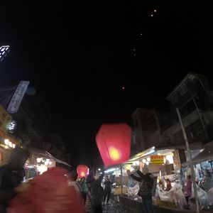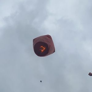 残念がる私の姿を見た添乗員さんが、現地語でランタン上げのスタッフに説明をして下さり、ランタンの上にたまった雨水の重みでランタンが上がらない事の説明を受け、スタッフが雨水を蒸発させてくれて、やっとランタンは空高く舞い上がりました♪