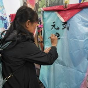 生憎の小雨のお天気でしたが、天燈もお兄さんの指導の下、無事空に高く