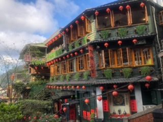 妻が今回の台湾周遊の旅のハイライトと期待していた九分でしたが、あいにく街並み全体が霧に包まれ、雨も降りだす始末。食事をした海悦樓茶房からの阿妹茶酒館の写真も霞んでよくわかりませんでした。十分でのランタン上げも小雨の中でしたが、願い事を妻と二人でランタンの四面に書き、お店の方に写真を撮ってもらって大満足。願い事を記したランタンが見事に夜空に舞い上がってゆく姿は圧巻でしたよ。