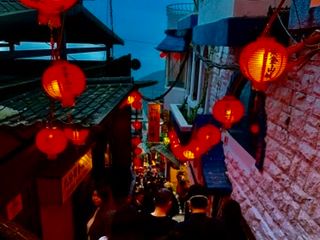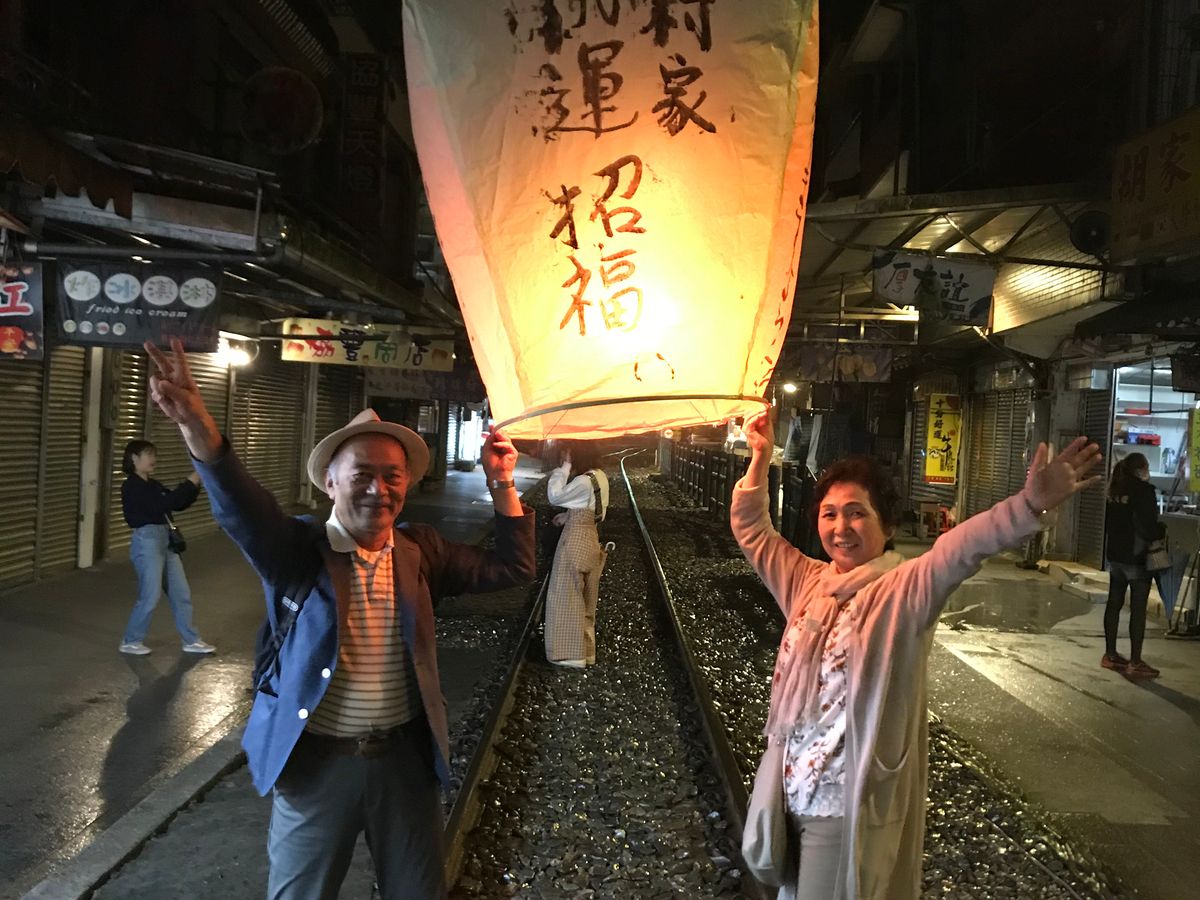 十分はあんなに近くに電車が通るのは初めてで、灯篭もとても綺麗でした。九分は時間たっぷりあるなかでたくさん丁さんが案内してくれて、とてもいい買い物ができ、また同じツアーの方もとてもいい方で安心して過ごせました。