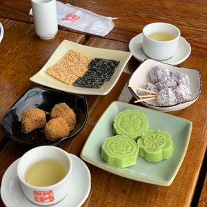 その後の九份は、雨が多いと聞いていましたが晴れていて、人も多くなく、綺麗な景色を見ることができました。まさに念願だった湯婆婆の屋敷!そこのお茶屋さんにも待つことなく入れて、お茶体験も楽しく、和菓子も美味しかったです。