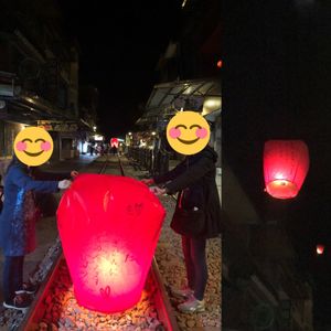 天気に恵まれ とても 良い一日でした。十分の滝めぐり 天燈あげで願いを書き 電車の窓からののどかな流れをながめ 時間どおりに行き 九分まで 丁度良く 午前中につきました。そのおかげで 混雑まで 少し時間があり 午後には とてつもない人の波になりましたが 私達はランチをして丁度よい時間に帰途につき 混雑を逃れて楽しいひと時でした。ランタンは レインボーにして健康 縁談 仕事 等 書いて あげました。九分では 千と千尋にちなんだ茶屋で ゆっくりお茶をたしなみました。