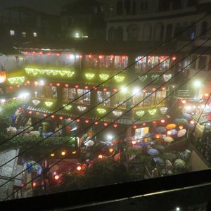 九份は土砂降り、大混雑でした。ビニールカッパを持って行って正解でしたが、大混雑かつ傘をさす人も多く、ゆっくりとしか歩けず、びしょ濡れでした。雰囲気は感じられましたが、天気の良い時に再チャレンジしたいと思います。夕食は特別なメニューではありませんでしたが、楽しめました。十分の天燈上げは雨も止み