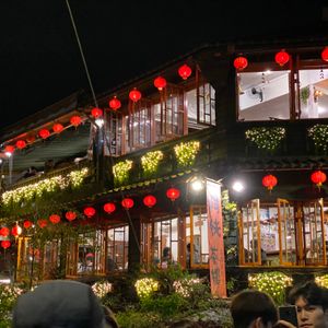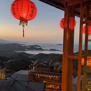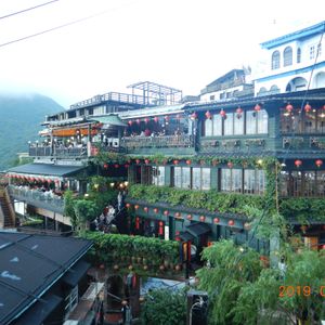 楽しみにしていた九扮でしたが、大雨ですごい人で一歩も前に進めないような中の散策でしたので、全く観光はできませんでしたが、ガイドのちょうさんのお陰で、阿妹茶酒館にすぐ入ることができました。また、大混雑で散策も難し状態でしたが、海悦楼のディナー付きでしたので、食事後に絶景写真が撮れて大満足でした。これがなければ、大混雑で身動きはとれず雨でビショビショの思い出しかなかったと思いました。天燈あげも、乗りの良いお兄さんがついてくれて、家族でとっても楽しかったです。夜にあがる天燈は、とても幻想的でした。天燈あげのお兄さんのもう一人は、怖くて感じ悪い方でずっと怒られている感じだったので、二つ目の時に、乗りの良いお兄さんにかえてもらいました。楽しみにいっているので、怒られている感はどうなのかと思います。ここだけ見直していただければ大変、満足でした。