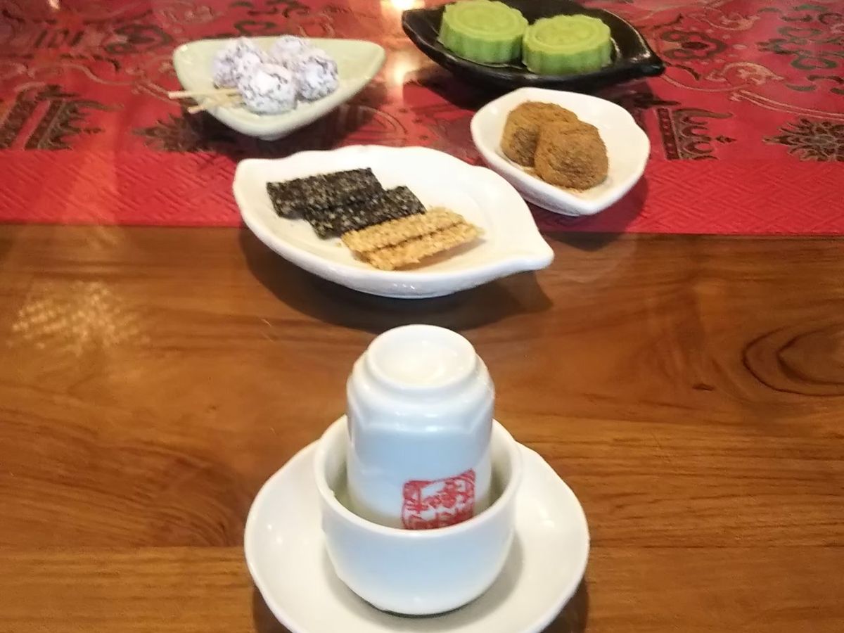 九份では、有名なお茶屋さんの店内が混んでる中…ガイドさんのお力で秘密の扉からVIP席のようなお部屋へ通され、おいしいお茶を飲むことができました!!