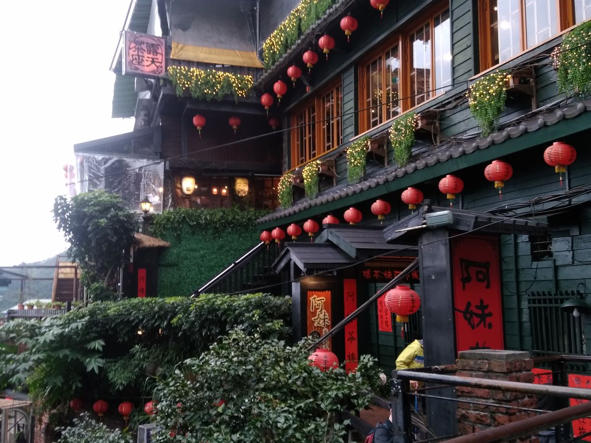 九分は狭い通路を散策と、途中の有名な阿妹茶楼で中国茶体験。混んでましたね。行ったかいがありましたよ。