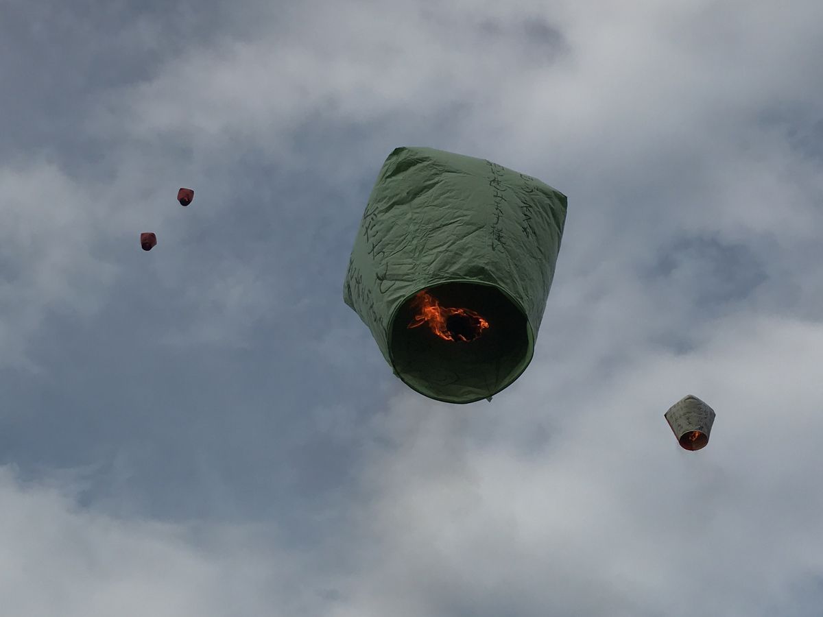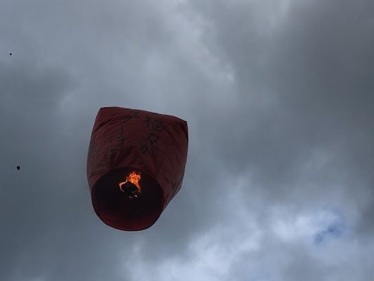 とてもいいショットでした。ランタンにお願い事を書くのは墨(毛筆)ですのでお洋服が汚れないよう気を付けてください。ウエットティッシュがあれば重宝します。