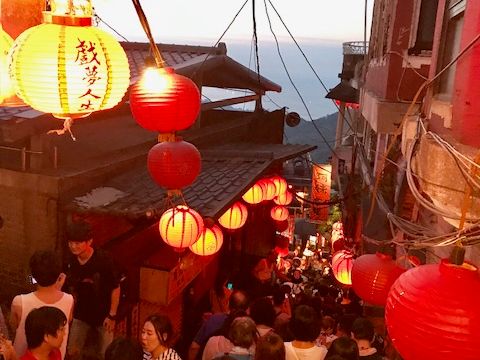 九份は、行く時期の日没時間を調べて、日没の30分前くらいに着くようにすると、いい景色が見られます。