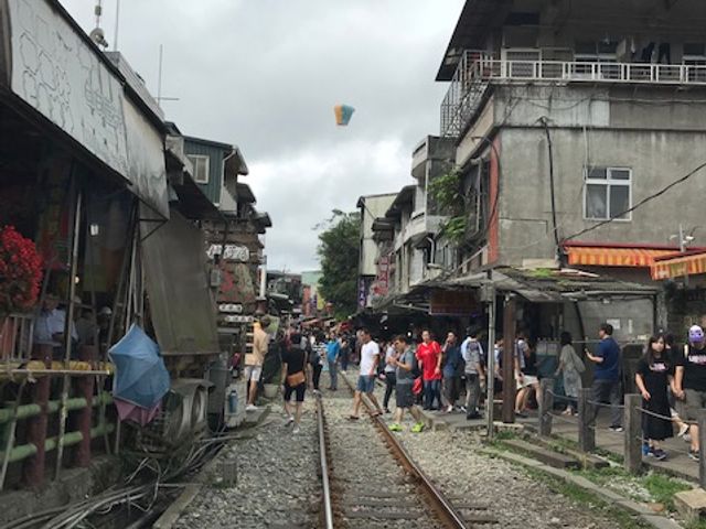 日本では十分より九分の方が有名ですが、是非時間を作って十分の天燈上げを体験するべきです。まずは大きな天燈の四方に願い事を墨で書きます。これだけでもテンション上がります。そして線路の上で火を付けてもらい、お兄さんの合図で手を離すと、スーと空に上がっていきます。空を見上げると無数の天燈が上がっていて、不思議な光景でした。お兄さんにiPhoneを渡すと、器用に四方の写真と、上げた瞬間の動画を撮影してくれます。iPhoneでないと操作がわからないからダメみたいでした。これは面白いから是非!