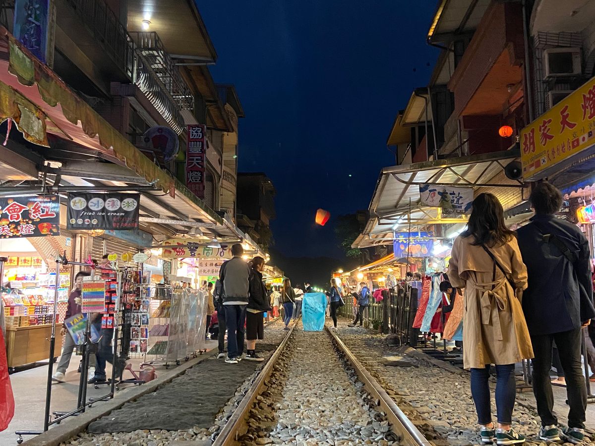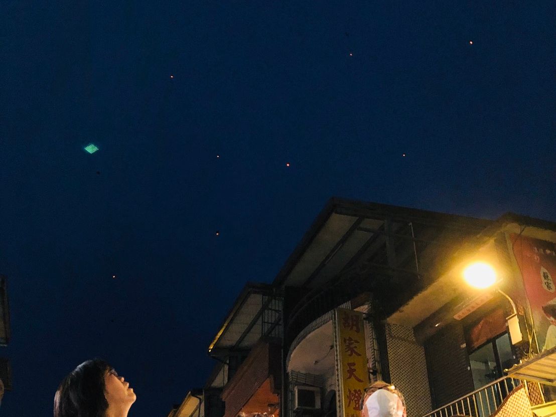 まず十分に行き電車が通った後に願い事を書いたランタンを飛ばしたのですが、夜空に上るdランタンの光が幻想的で、見入っていました。
