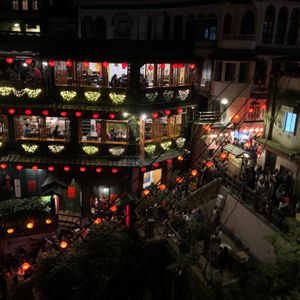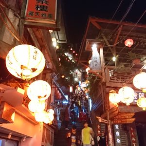 九份では、下るルート近くまで連れて行ってもらうことができました。両親は、普通のツアーだと階段下から登ってくる姿を見て、このオプションで良かった。と喜んでくれました。メインストリートは恐ろしいぐらいの大混雑❗️前回来た時は、こんなに混んでいなかったのに‥。夕食場所まで、そして、その場所を通り越すまで大変でした。ですので、夕食場所からメインストリートを眺めることができたのはとってもよかったです。