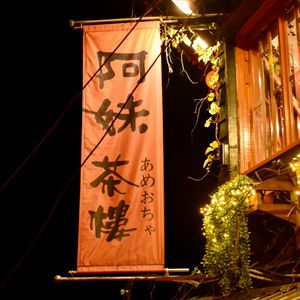 九份に到着したのは、日が沈み真っ暗になってからでした。思っていたよりも坂道が急で狭く、石段の数も多く、歩きにくいところです。観光客も多いです。ここは、スニーカーが必需品です。九份の雰囲気は、何とも幻想的で、やっぱり日が暮れてから行くのがお薦めですね。