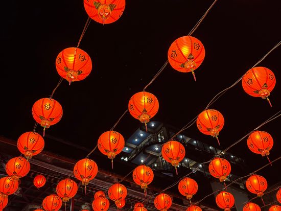 ランタンの照らされてる街並みも