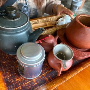 茶芸館に書いてある中国語の意味、お茶の入れ方をガイドさんから習い、台湾の茶道を学びました。
