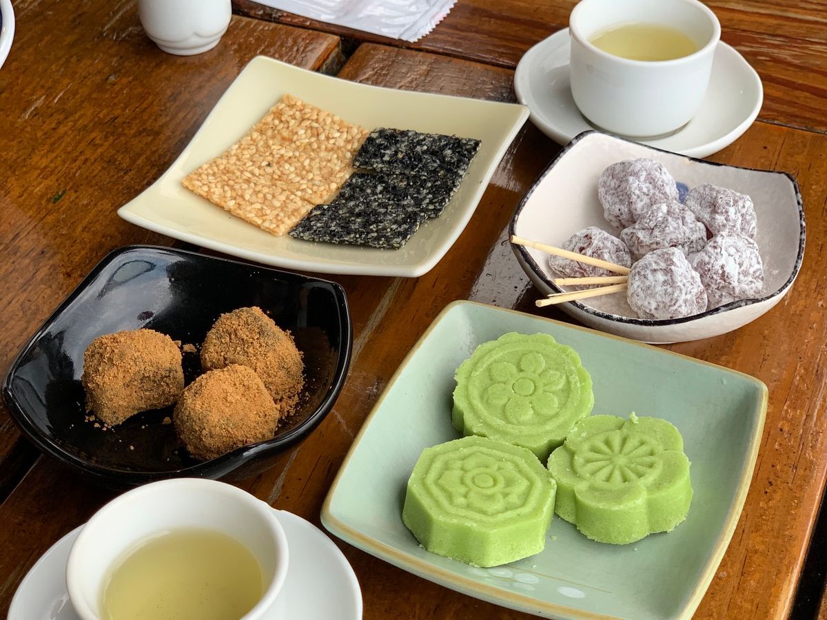 その後の九份は、雨が多いと聞いていましたが晴れていて、人も多くなく、綺麗な景色を見ることができました。まさに念願だった湯婆婆の屋敷!そこのお茶屋さんにも待つことなく入れて、お茶体験も楽しく、和菓子も美味しかったです。