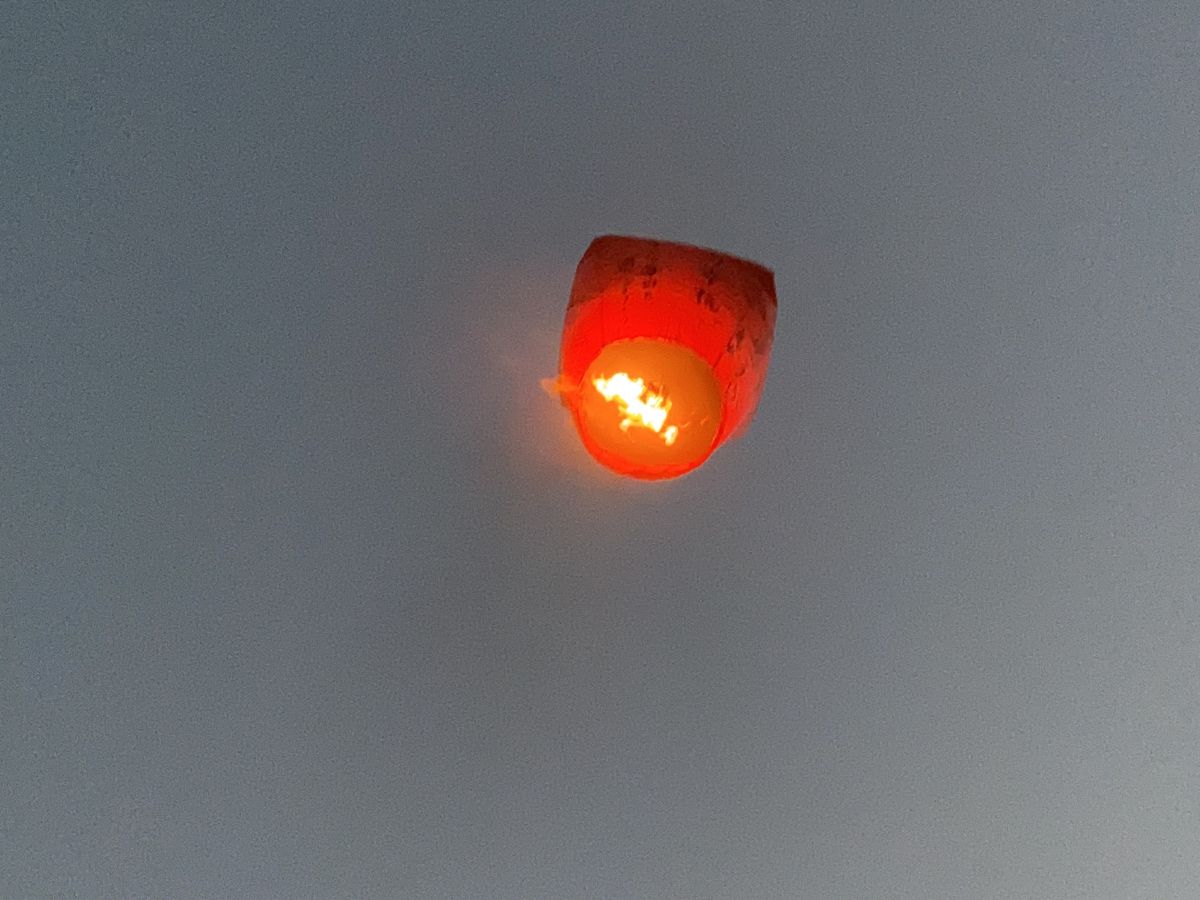 夕刻に出発でしたが、ちょうどランタン飛ばしの時には暗くなり、とっても綺麗でした。