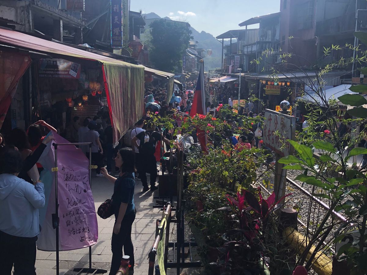 九份は行ったことがあるが十分は初めて。自分で願いを書いたランタンが上がっていくのに感動しました。三連休のため参加人数が多かったにもかかわらず、ガイドさんの手際もよく楽しいツアーでした。