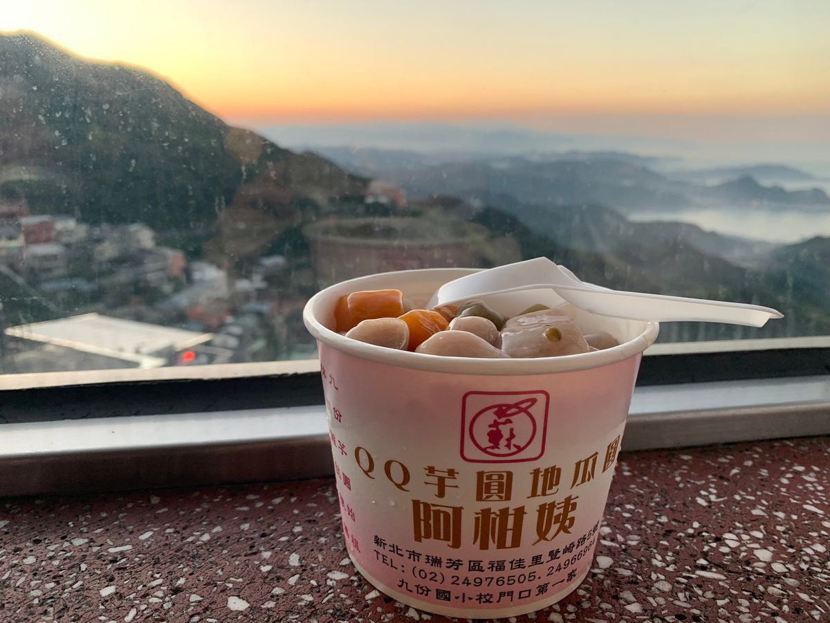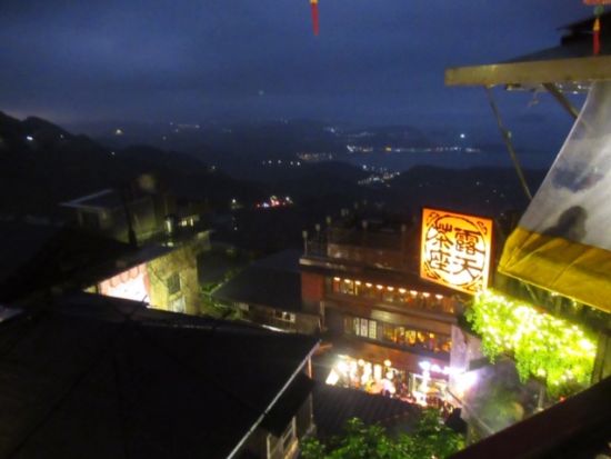 まだ明るいうちに九份に着くプランなので、混雑がピークになる前に有名なお茶屋さんでお茶と昼間の景色を楽しみ、それから散策しながら行きたかったかき氷の店へ行き窓辺から美しい日没を満喫して、暗くなってからまた先ほどのお茶屋さんの辺りに戻り有名な点灯した提灯の美しい光景を見て、集合時間まで時間の許す限り夜の九份を賞味・散策したっぷりの時間を有意義に過ごすことができました。