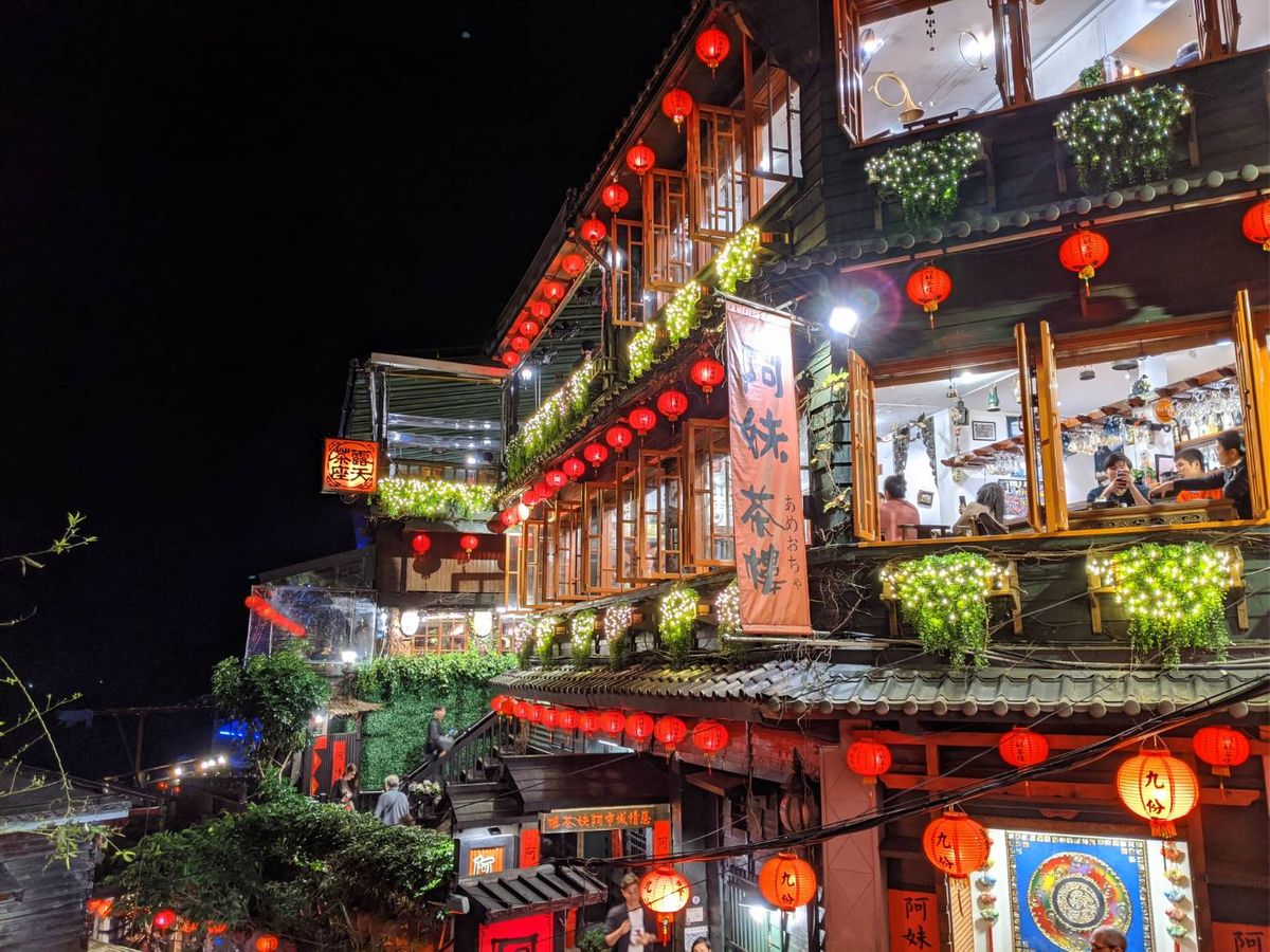 噂通り大雨の九份と十分〜先ず、いつもと順番が逆のツアーだとガイドからのご案内。それが良かったのか、、、⁉️十分の後の九份は、大雨で、かつ楽しみにしてたお店も閉店時間。そのお陰で⁉️人も、まばら。空いていた事をガイドからラッキー扱いされたが、、、楽しみにしてた、御茶屋、芋屋も行けず ただ大雨に打たれに行っただけ。悲しい。