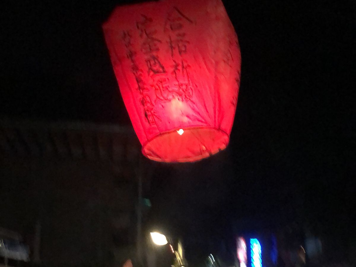 十分は夜のせいか観光客は多くありませんでした。天燈上げの現地スタッフののりが良く、気分を上げられ面白い写真を撮れました。夜に上げる天燈は美しくみえます。