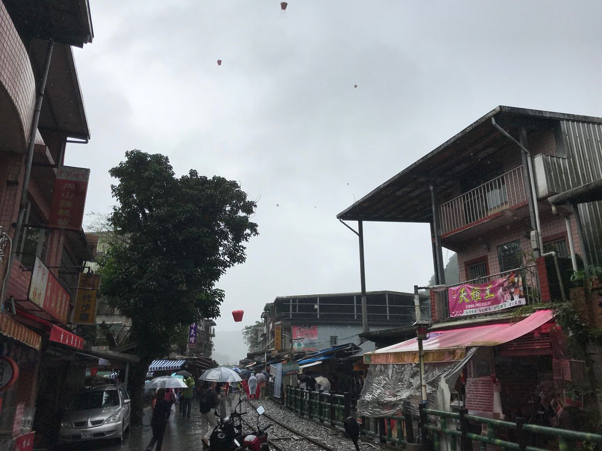 15時頃 十分老街でランタン