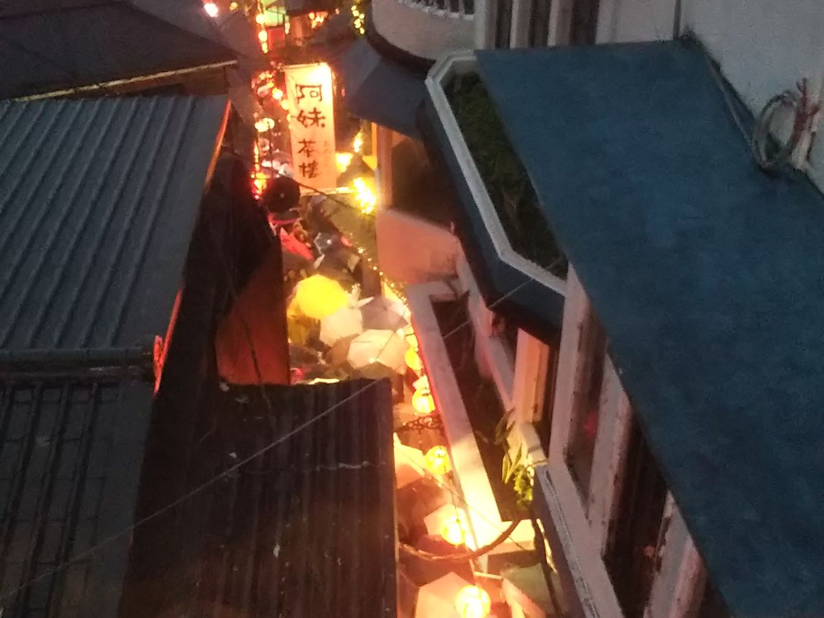 今回の目的は、天燈上げと九分の街並み&阿妹茶楼です。どの時間にどの順番で周るのが良いか悩みましたが、今回は台湾が冬の時期ということもあり、日が暮れるのが早いので、十分は明るいうちにしっかりと観光し、夕暮れの九分を堪能しました。九分についてすぐ、ガイドさんの誘導で阿妹茶楼はすぐに行くことができ、ほかの口コミのように300元でしたが、お茶の味や雰囲気を十分堪能でき珍しい茶菓子もいただき満足です。高いという方もいらっしゃいますが、立地と内容的にお茶好きなら最高だと思います。