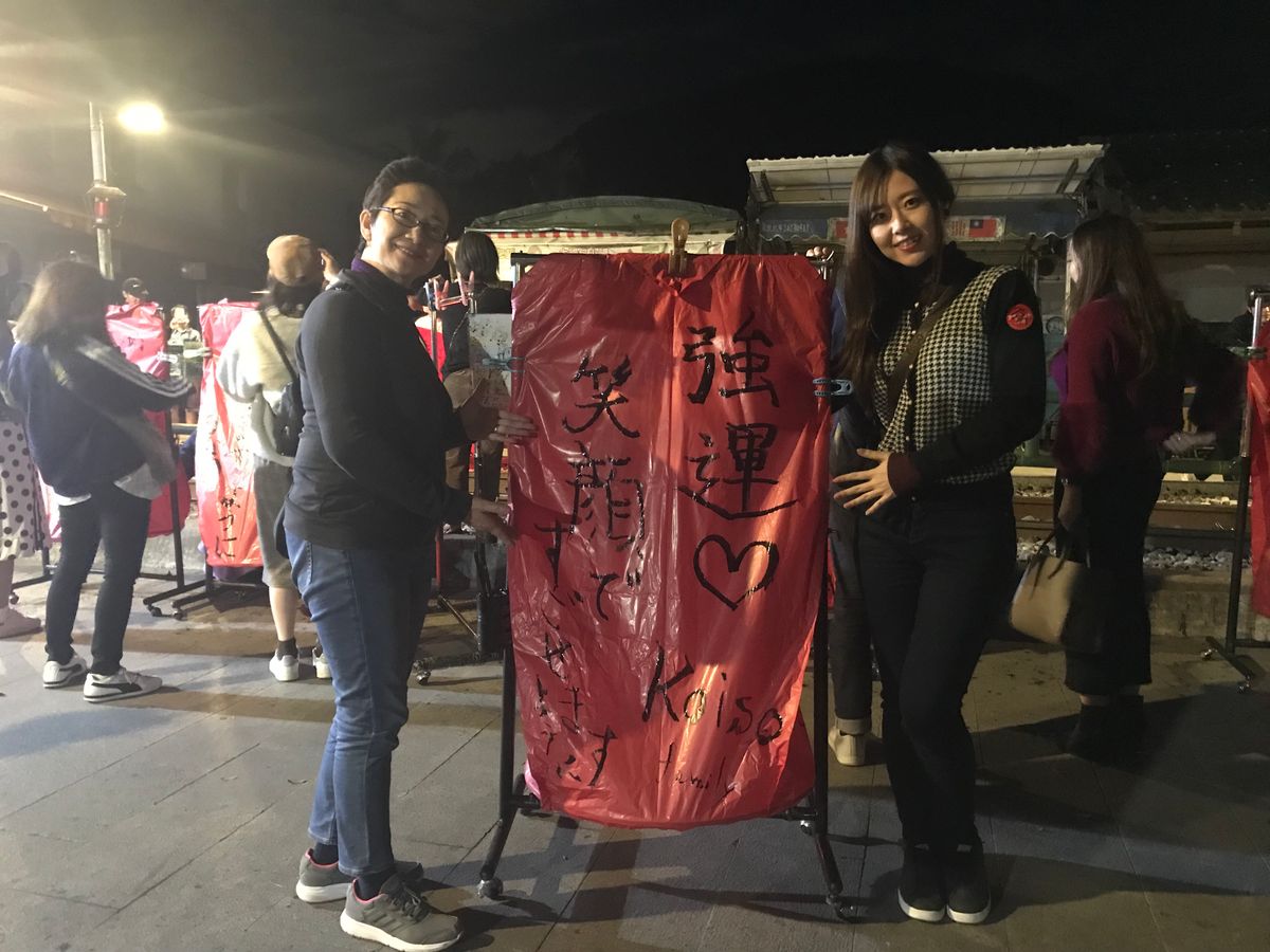 次に十份で皆がやっているように自分(達)用のランタンを貰い、願い事を4面に書いて漆黒の夜空に飛ばすのだが、自分たちとランタンをビデオにしっかり残すには、自分で撮るよりも、撮影にとても慣れている係のお兄さん(誰でも良いと思うが、撮影の腕には個人差はありそう)に頼んで撮って貰う。これが二つ目のアドバイスです。私も家族とのランタン飛ばしを撮って貰いましたが、暗い夜空でも空中に神秘的に上がってゆくランタンを追いかけピントもしっかり合わせて撮ってくれました!
