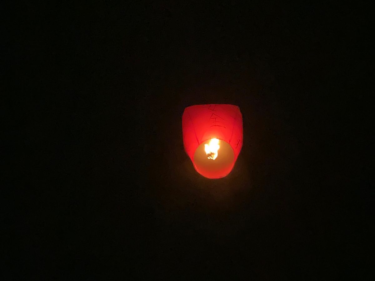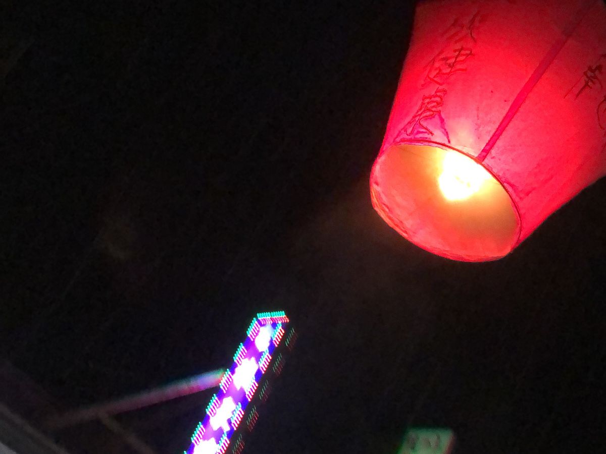 書くことを決めていたので一番最初に書き上げるとスタッフのお兄さんと天燈を持って線路へ行きすぐ上げました。