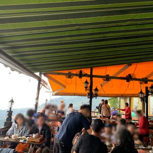 おかげですぐに入ることができて、三階のテラス席で日没までゆっくりとお茶を楽しむことができました。