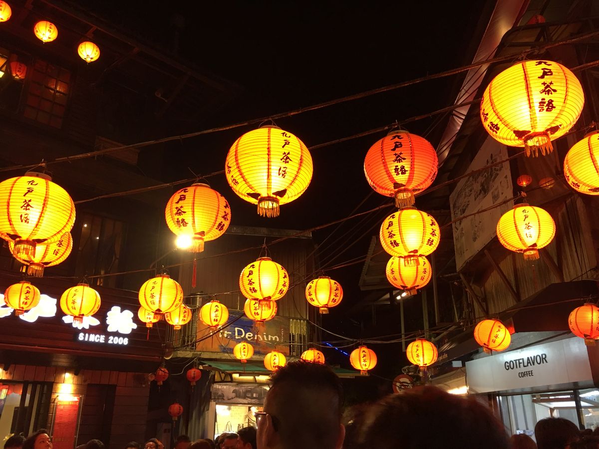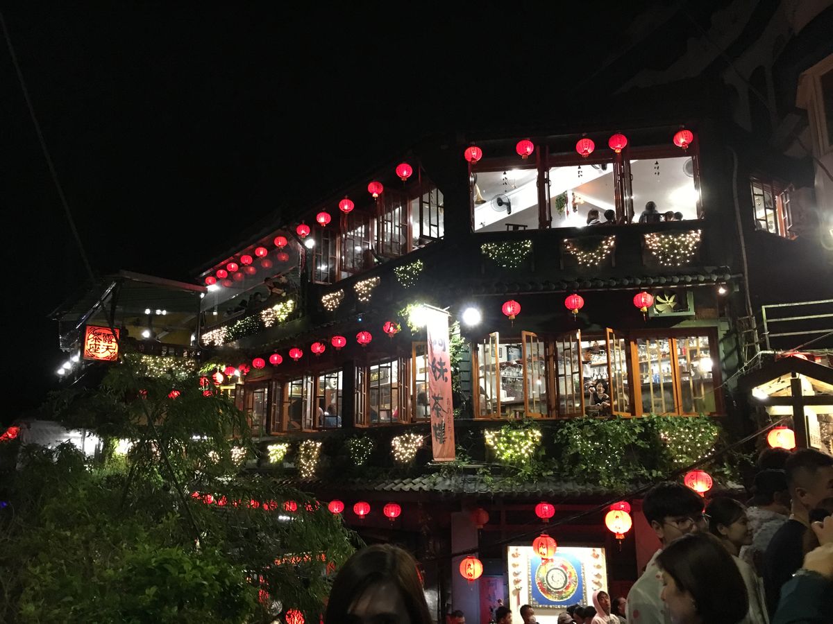九份の街中を色々案内してもらい、十分へ移動の途中で私たちが全然知らない、でもとっても素敵なお寺に案内してもらい(夜なのでライトアップされた外観だけでしたが)十分での天燈上げは、欲張りなお願いを書いた天燈が夜空に吸い込まれていく様に皆で大歓声!