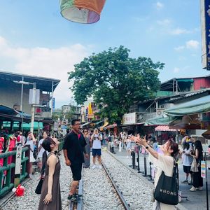 十分での天燈上げは、よく写真などで見る線路沿いではなく、狭い商店の裏口のような場所での実施となり、少し残念でした。天燈もカラフルなものではなく単色で、「インスタ映え間違いなし!」という紹介文とは印象が異なりました。カラフルな天燈にはそれぞれの色に意味が込められており、それを選ぶ楽しさも期待していただけに、物足りなさを感じました。さらに、線路の上で電車が来ないタイミングを見計らって飛ばすという、十分ならではのスリルや景色も味わえなかったのが心残りです。