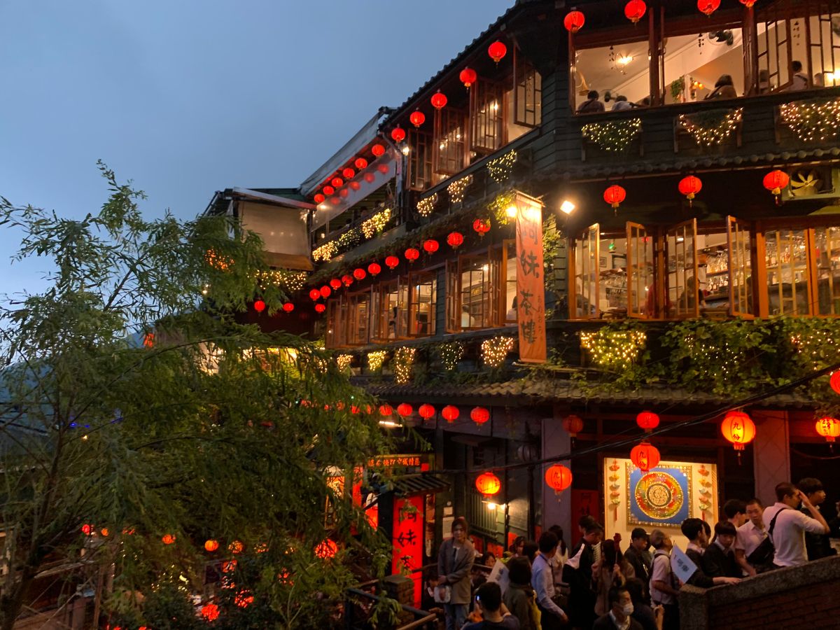 九份には19時ごろに到着するので観光客がとても少なく、写真スポットで写真を撮り放題でした。予約してあったお茶屋さんも、林さんが案内してくださり、すぐに入店でき、テラス席でお茶をゆっくり楽しむことができました!