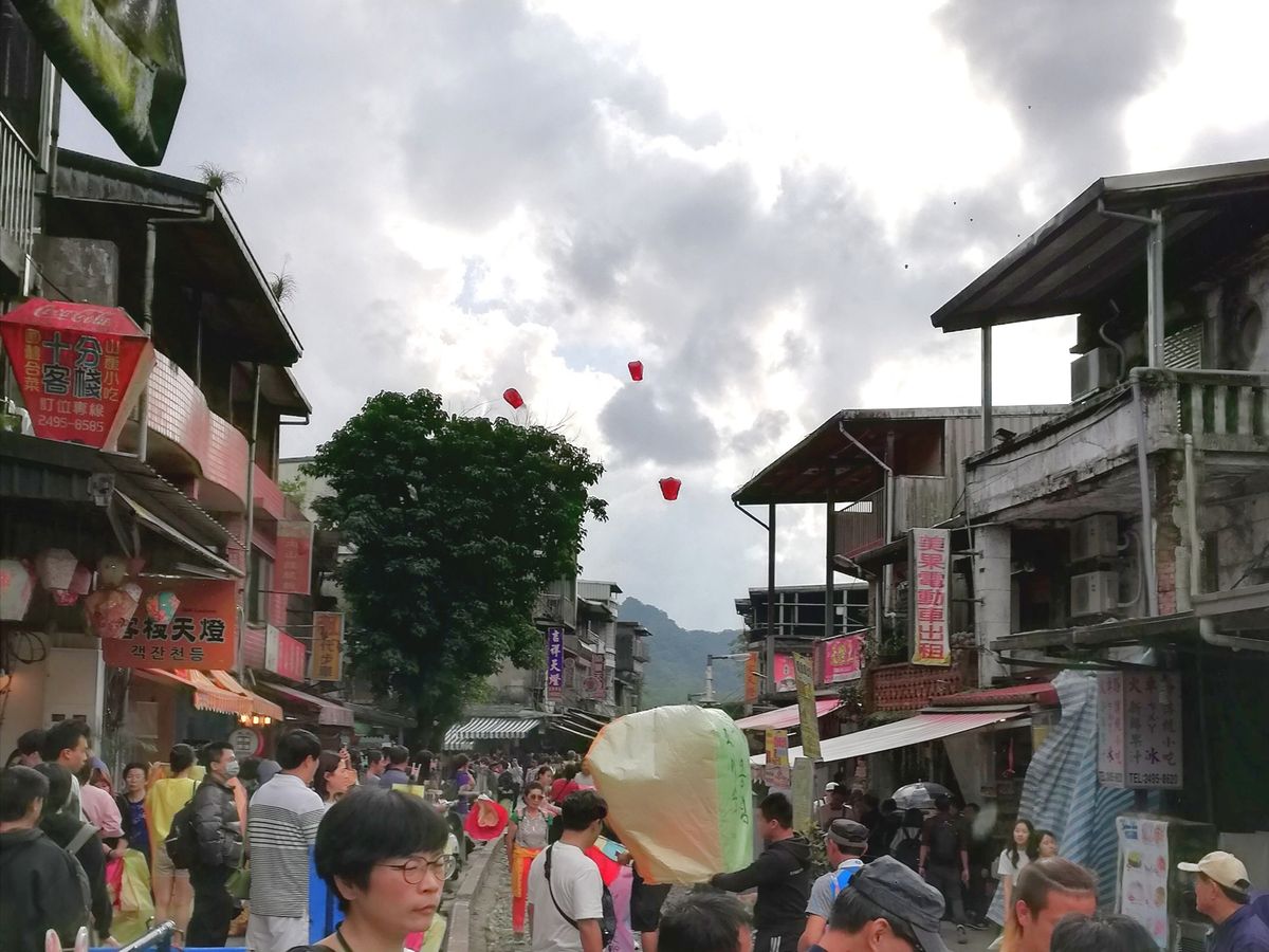 十分の滝を後にし、十分へ。空には天燈がたくさん上がっているのが見えます。町はレトロで素敵です。ツアーに付いているのは1色ですが追加料金で4色の天燈が選べるので(色によって願い事が違います)私たちは4色を選びました。