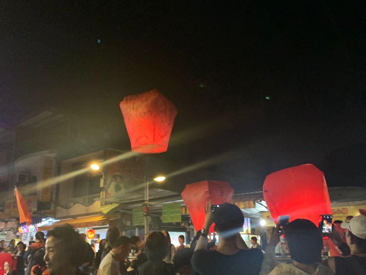 まずは十分で天燈上げ。もう暗くなっていたので、幻想的で奇麗でした。