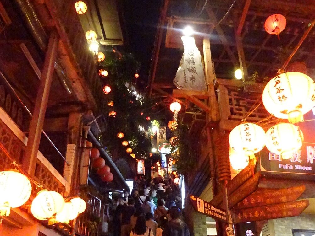私たちは金曜日に参加しましたが、九份は人がいっぱいで満員電車のように身動きが取れない状態でした。