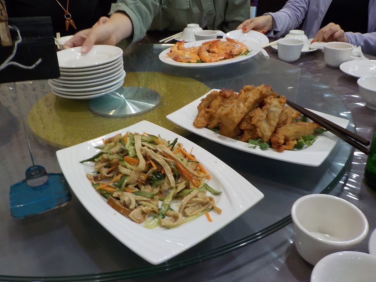 九份の駐車場に着いたのは、11時25分ごろ。昼食会場は円卓、驚いたのは20人くらいいるのに、円卓は2卓。隣の人と腕がぶつかる感じ。大皿を皆で分け合うんですが、5人前を11人で分けてる感じ。少なくて思わずこれは試食?と思ってしまいました。