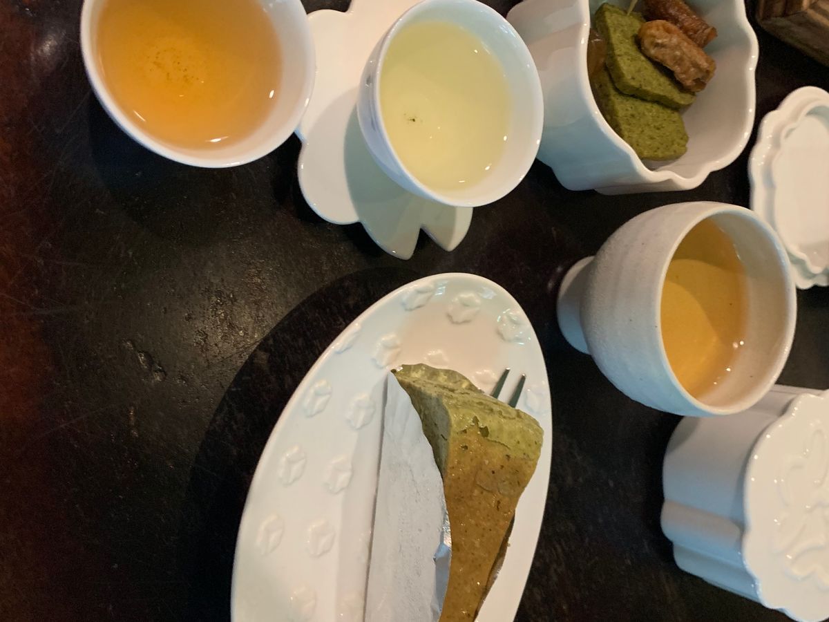 台湾のお茶、烏龍茶チーズケーキもゆっくり景色を見ながらいただけて 買い物もできました。
