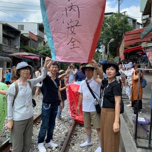 十份の天燈上げでは、運転手さんがお店の方と全部仲介してくださったため、安心して上げることが出来ました。運転手さんとお店の方にビデオや写真を撮っていただきました。