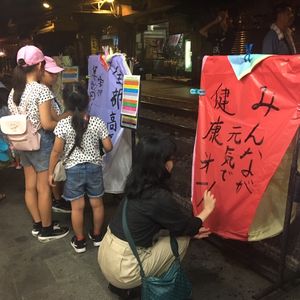 十份は20時ごろに行ったので人が少なくたくさんのランタンは見られませんでしたが一組ずつ写真撮影とランタンあげが堪能できました!