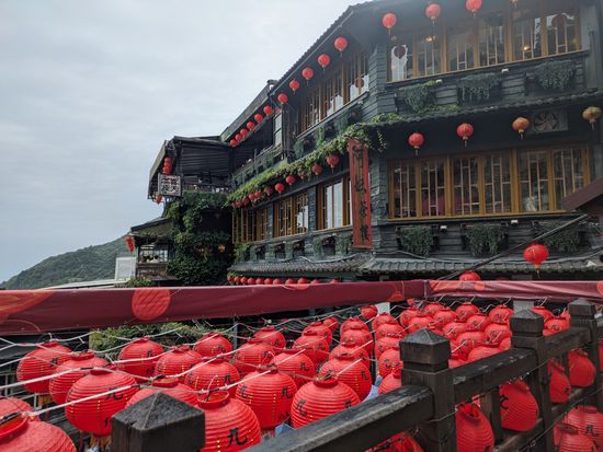 九份はとにかく階段が辛かったです。伊香保温泉のような感じ。烏龍茶のクラシックスタイルを体験したく有名な茶店に入りましたが19時過ぎてたので待つことなく入店できました。お茶を嗜んだ後はもう他のお店は閉店しているところが多く、もっと早く来れたら良かったかなと思います。海の景色もキレイらしいので昼間の九份も来てみたくなりました。