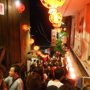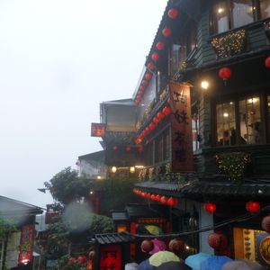 天気はあまりよくありませんでしたが、十分での天燈上げや十分の滝ツアーを見たあとで、夜の九份を楽しめました。旧正月で雨にもかかわらず地元の台湾の方を含めたくさんの人がいましたが、いろいろ食べ歩いたりできました。