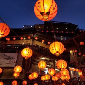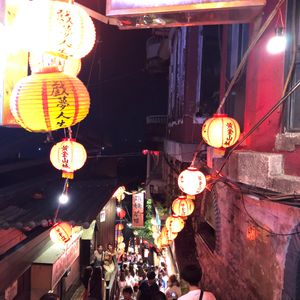 九份は17時頃に着き暗くなる前だったのでランタンの幻想的な景色が見れませんでしたが、沢山の人混みを避け海悦楼に入り写真や景色をゆっくり堪能できました。料理はイマイチでしたが。その後十分、夜市と連れて行って頂き満足できたプチ旅行でした。