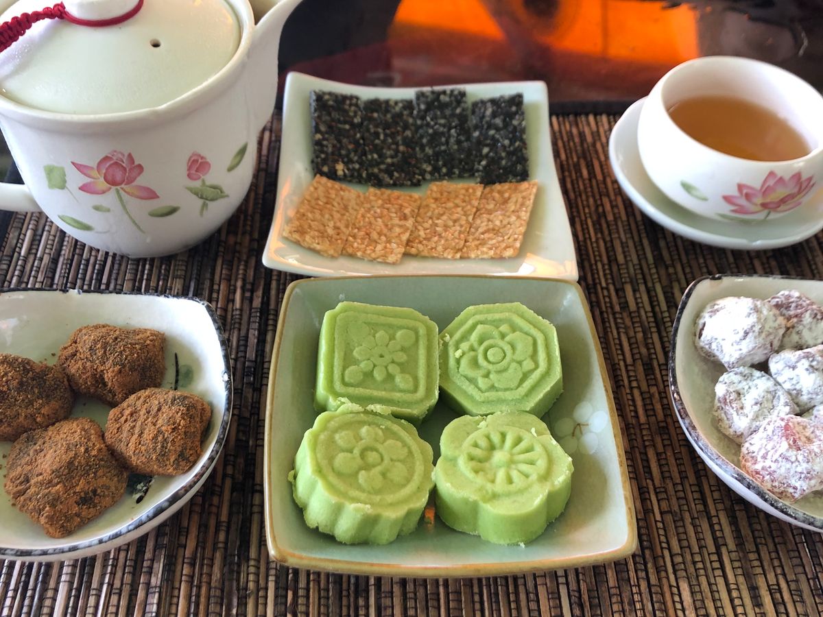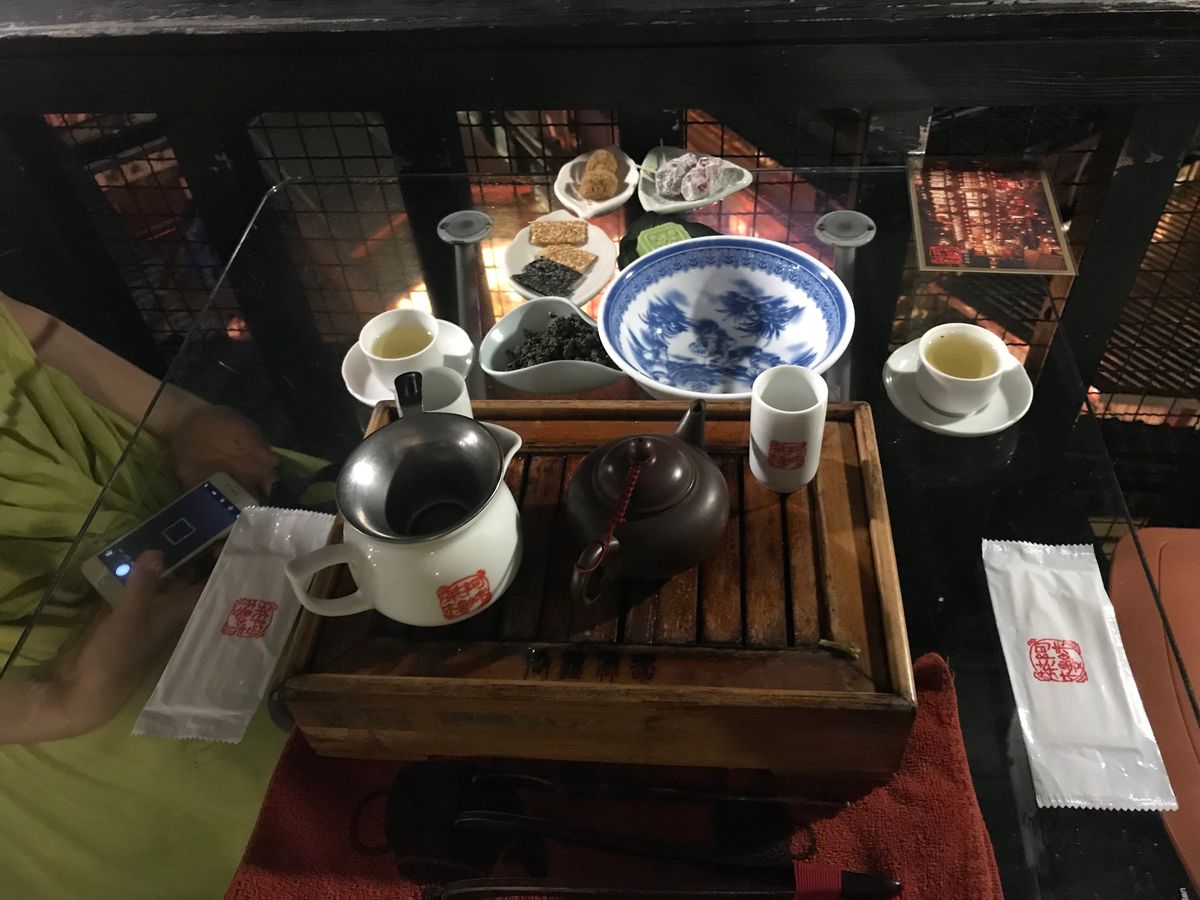 娘は日本の一般的な烏龍茶が苦手だったので少々不安ではありましたが、このお茶、美味しいー!と、私以上におかわり。◯◯産(どこか忘れました)の高山烏龍茶との事、お腹いっぱいになるまで飲み続けました。記念の阿妹茶樓ポストカードや、余ったお茶の葉も頂くことが出来ました。