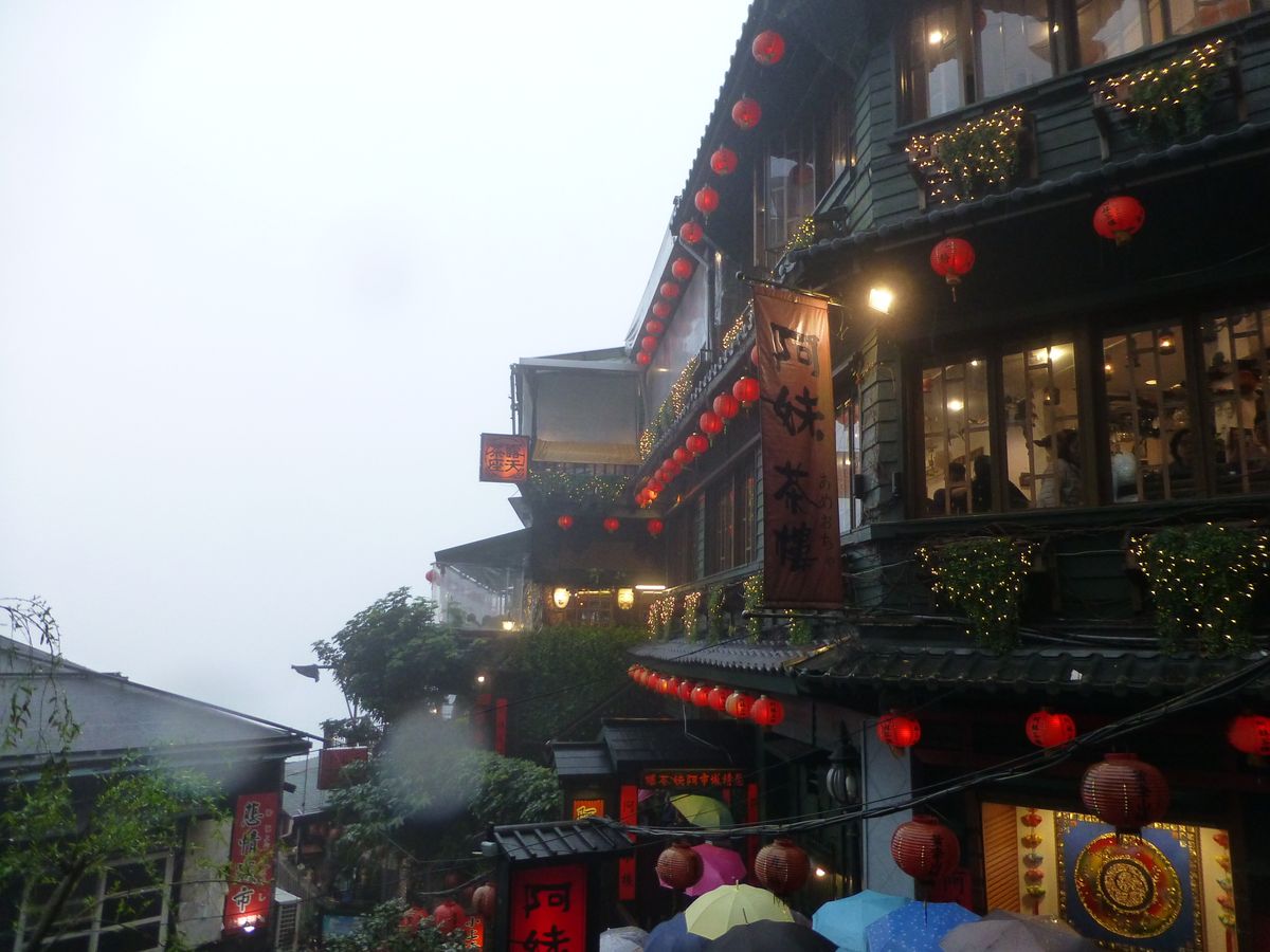天気はあまりよくありませんでしたが、十分での天燈上げや十分の滝ツアーを見たあとで、夜の九份を楽しめました。旧正月で雨にもかかわらず地元の台湾の方を含めたくさんの人がいましたが、いろいろ食べ歩いたりできました。