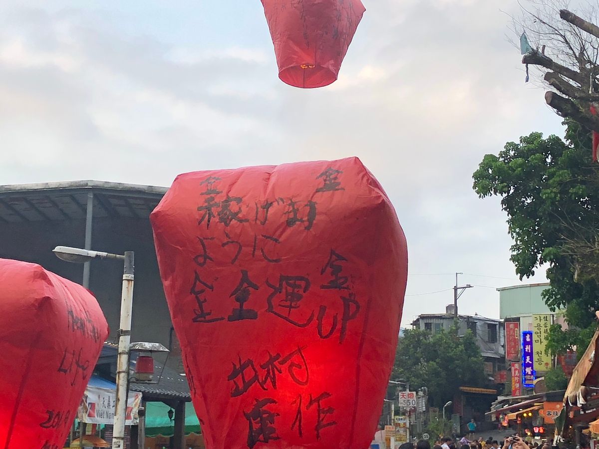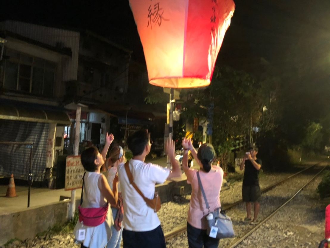 十份は20時ごろに行ったので人が少なくたくさんのランタンは見られませんでしたが一組ずつ写真撮影とランタンあげが堪能できました!